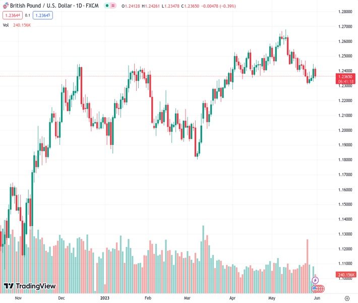 The US Dollar (USD) trims a part of its intraday gains to the highest level since mid-March in reaction to the disappointing release of the Chicago PMI, which fell to 40.4 in May from the 48.6 previous. The British Pound, on the other hand, continues to draw some support from the possibility of additional interest rate hikes by the Bank of England (BoE), bolstered by stronger-than-expected consumer inflation figures released last week. This, in turn, lends some support to the GBP/USD pair, though the lack of follow-through buying warrants caution before positioning for an extension of the recent bounce from the 1.2300 neighbourhood, or a nearly two-month low set last Thursday.
