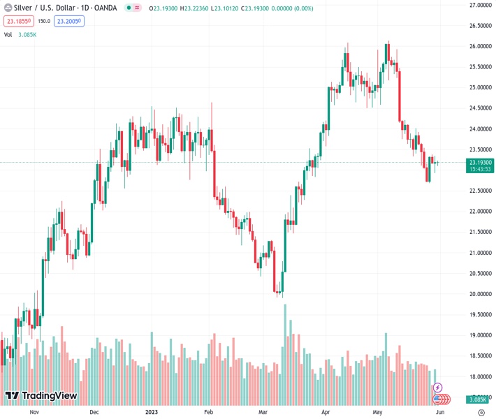 XAGUSD currently trading at 23.17 at the time of writing. Pair opened at 23.19 and is trading with a change of -0.09% % .