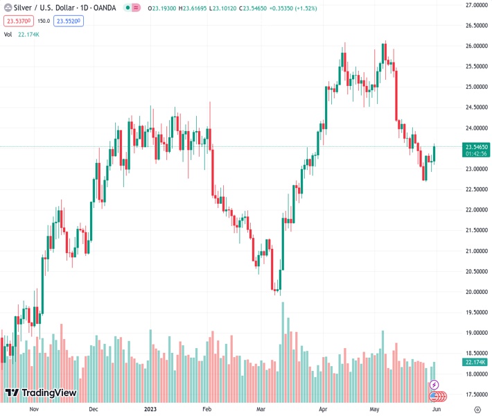 Silver price climbs past the 100-day Exponential Moving Average (EMA) and trades back above the $23.50 area, sponsored by several factors. Firstly, US Federal Reserve (Fed) Vice-Chairman nominee Philip Jefferson delivered dovish remarks alongside Philadelphia Fed’s Patrick Harker, while confidence about passing the US debt-ceiling bill triggered a fall in US Treasury bond yields.