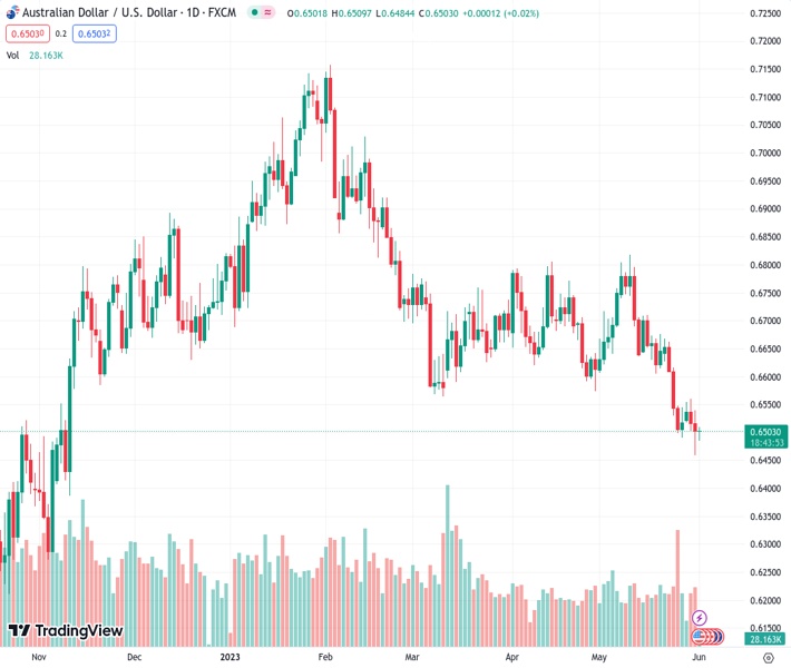 AUDUSD currently trading at 0.6486 at the time of writing. Pair opened at 0.6503 and is trading with a change of -0.26 % .