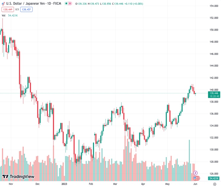 USDJPY currently trading at 139.39 at the time of writing. Pair opened at 139.34 and is trading with a change of 0.04% % .