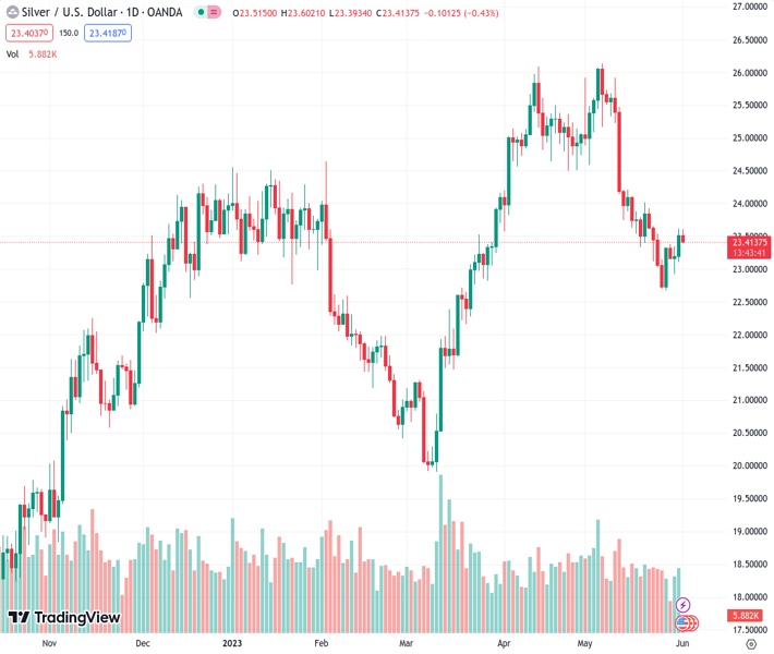 XAGUSD currently trading at 23.56 at the time of writing. Pair opened at 23.51 and is trading with a change of 0.21 % .
