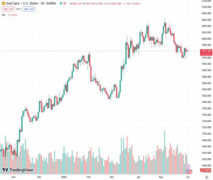 Gold price (XAU/USD) teases bears after keeping the buyers hopeful in the last two days, retreating from the weekly top of late. In doing so, the yellow metal justifies the market’s dicey conditions as optimism surrounding the US debt-ceiling deal and receding hawkish bias about the Federal Reserve (Fed) contrasts with the cautious mood ahead of the top-tier US data. It’s worth noting that the upbeat China Caixin Manufacturing PMI adds strength to the XAU/USD’s upside momentum even as the 40.0% probability of the Fed’s 25 bps rate hike in June prods the Gold buyers.