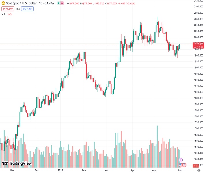 Gold Price (XAU/USD) remains on the front foot at the weekly high, making rounds to $1,975-77 amid early Asian session on Friday following the two-day uptrend. With this, the yellow metal braces for the first weekly gains in four amid broad weakness in the United States Treasury bond yields and US Dollar. While trading the main catalysts, the market’s expectations of witnessing the Federal Reserve’s (Fed) rate hike pause in June gain major attention. Adding strength to the XAU/USD upside is the passage of the US debt-ceiling deal through the House of Representatives and the mixed US data. Furthermore, upbeat China PMI also favored the Gold buyers.
