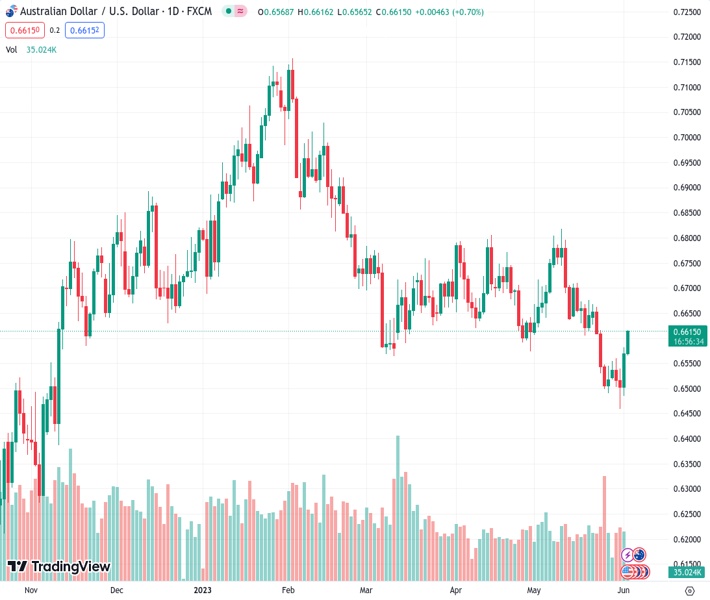 AUDUSD currently trading at 0.6612 at the time of writing. Pair opened at 0.6567 and is trading with a change of 0.69% % .