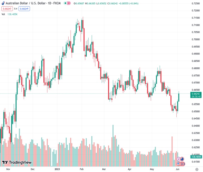 AUDUSD currently trading at 0.6626 at the time of writing. Pair opened at 0.6567 and is trading with a change of 0.9 % .