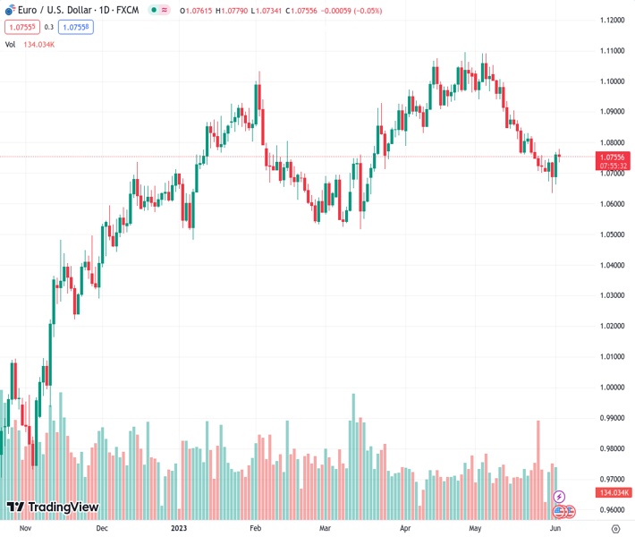 #EURUSD @ 1.07522 now reverses initial gains and revisits 1.0980.