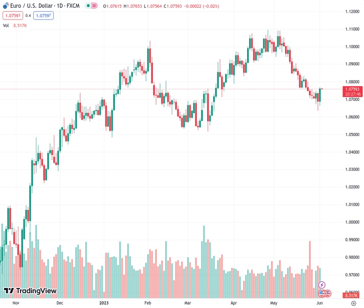 EURUSD currently trading at 1.076 at the time of writing. Pair opened at 1.0762 and is trading with a change of -0.02% % .