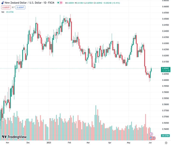 Apart from this, Thursday’s disappointing release of the US ISM Manufacturing PMI, which contracted for the seventh straight time in May, and a positive risk tone further undermines the safe-haven buck and benefits the risk-sensitive Kiwi. A private survey showed on Thursday that China’s manufacturing sector unexpectedly registered modest growth in May, raising hopes of a recovery in the world’s second-largest economy. Furthermore, the passage of bipartisan legislation to lift the government’s $31.4 trillion debt ceiling and avert an unprecedented American default boosts investors’ confidence. Meanwhile, the USD bulls seem unimpressed by the upbeat US ADP report.