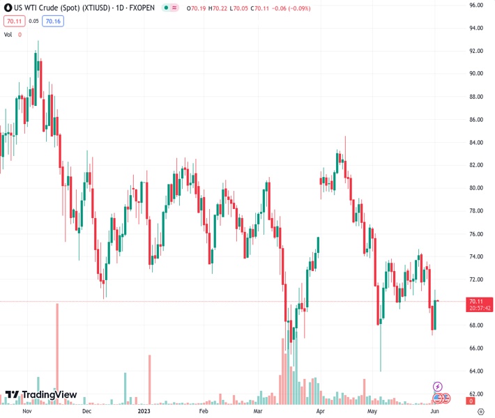 XTIUSD currently trading at 70.14 at the time of writing. Pair opened at 67.65 and is trading with a change of 3.68 % .