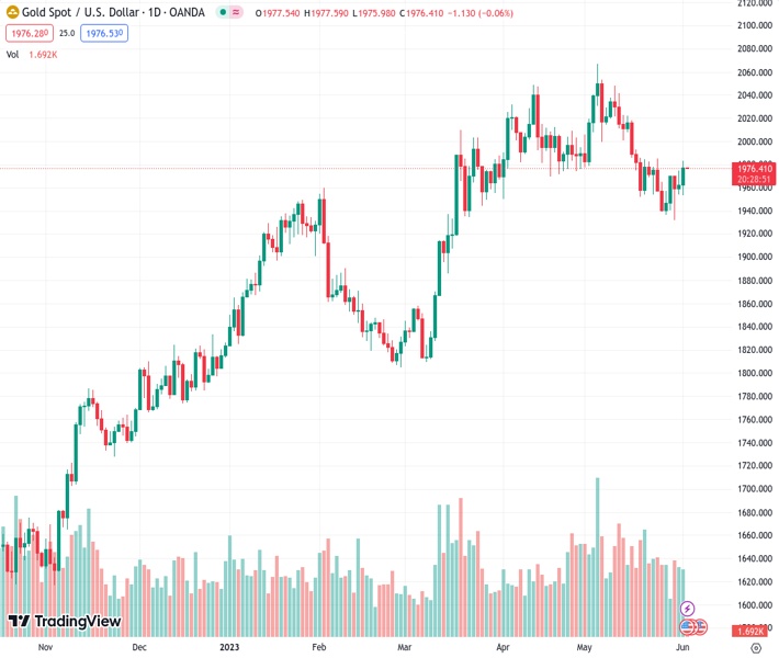 XAUUSD currently trading at 1976.9 at the time of writing. Pair opened at 1977.76 and is trading with a change of -0.04 % .