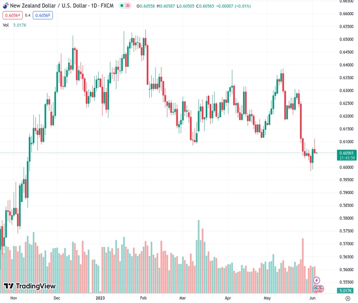 NZDUSD currently trading at 0.6057 at the time of writing. Pair opened at 0.6061 and is trading with a change of -0.07% % .