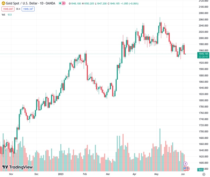 XAUUSD currently trading at 1949.92 at the time of writing. Pair opened at 1948.02 and is trading with a change of 0.10% % .