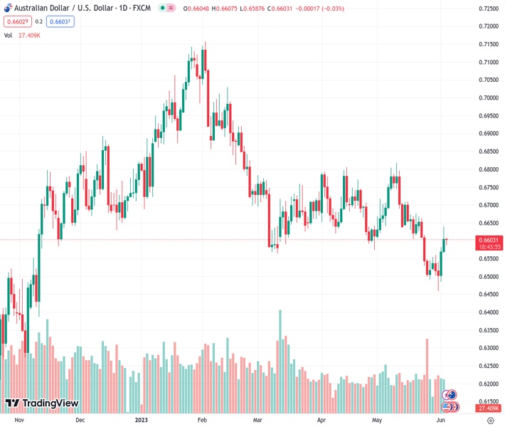 AUDUSD currently trading at 0.6605 at the time of writing. Pair opened at 0.661 and is trading with a change of -0.08 % .