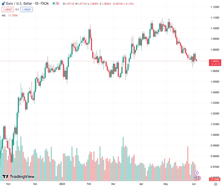 EURUSD currently trading at 1.0697 at the time of writing. Pair opened at 1.0708 and is trading with a change of -0.10% % .