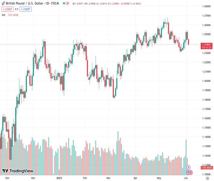 GBPUSD currently trading at 1.2389 at the time of writing. Pair opened at 1.245 and is trading with a change of -0.49 % .