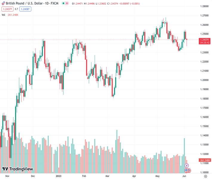 GBPUSD currently trading at 1.2442 at the time of writing. Pair opened at 1.245 and is trading with a change of -0.06 % .
