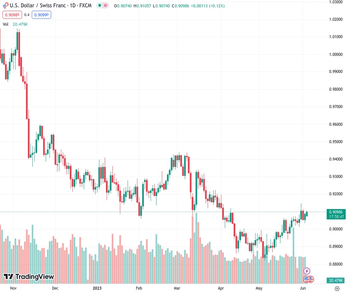 USDCHF currently trading at 0.9102 at the time of writing. Pair opened at 0.9092 and is trading with a change of 0.11% % .