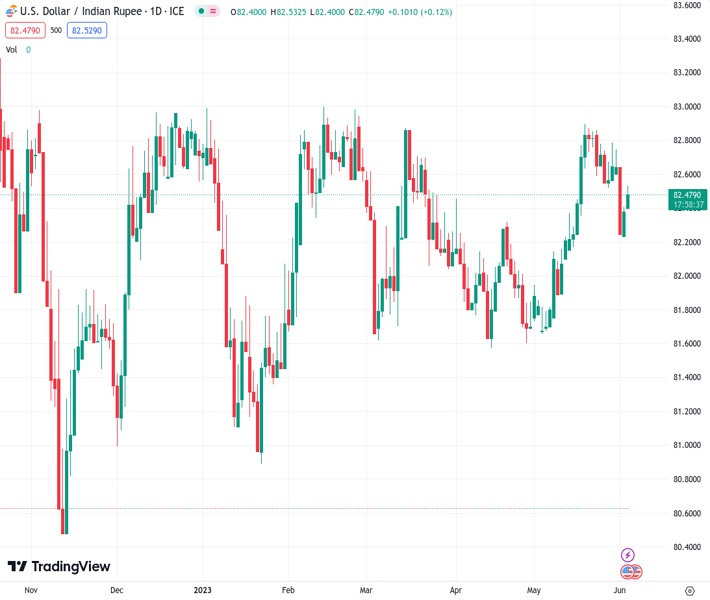 USDINR currently trading at 82.526 at the time of writing. Pair opened at 82.4034 and is trading with a change of 0.15% % .