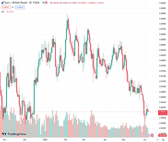 EURGBP currently trading at 0.8603 at the time of writing. Pair opened at 0.8607 and is trading with a change of -0.05% % .