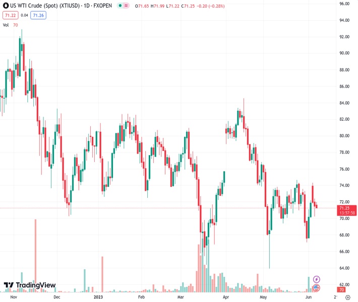 XTIUSD currently trading at 71.43 at the time of writing. Pair opened at 71.51 and is trading with a change of -0.11% % .