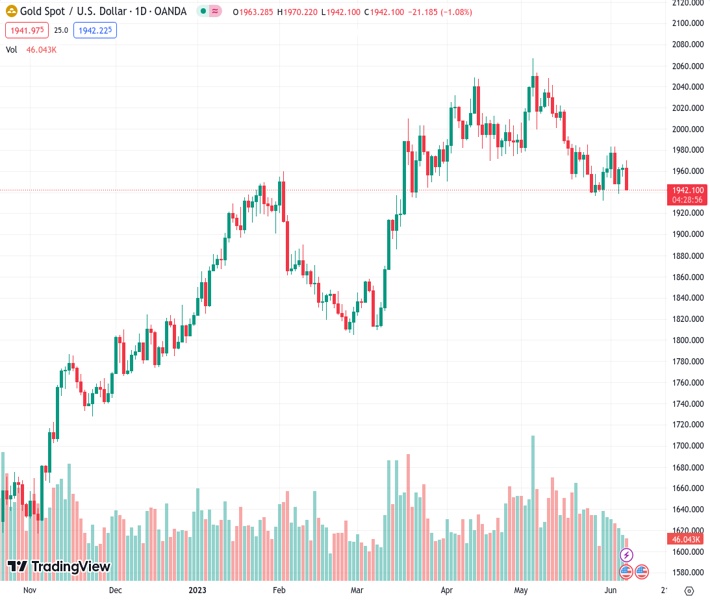 XAUUSD currently trading at 1947.25 at the time of writing. Pair opened at 1963.6 and is trading with a change of -0.83 % .