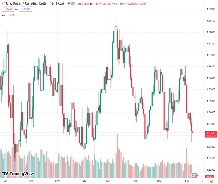 USDCAD currently trading at 1.3364 at the time of writing. Pair opened at 1.3369 and is trading with a change of -0.04 % .