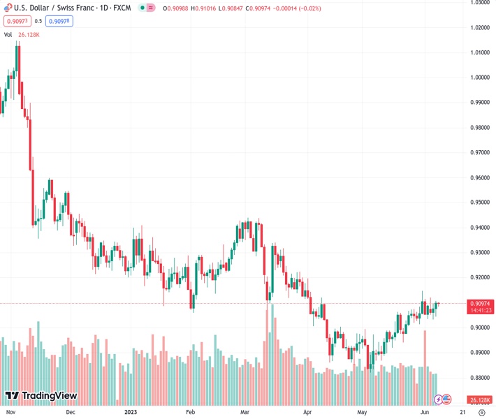 USDCHF currently trading at 0.9089 at the time of writing. Pair opened at 0.9102 and is trading with a change of -0.14 % .