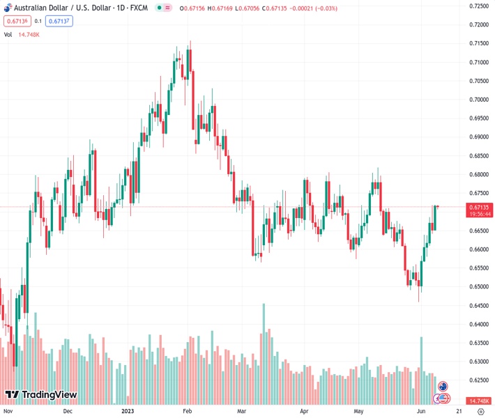 AUDUSD currently trading at 0.6711 at the time of writing. Pair opened at 0.6716 and is trading with a change of -0.07% % .