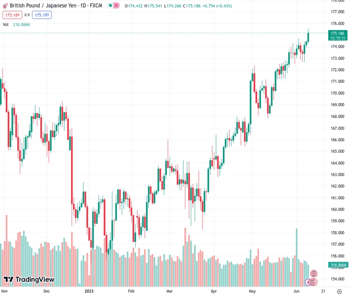 GBPJPY currently trading at 175.24 at the time of writing. Pair opened at 174.49 and is trading with a change of 0.43 % .