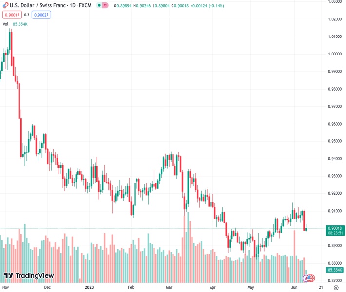 The USD/CHF pair has faced stiff barricades after a recovery move to near 0.9020 in the late European session. The Swiss Franc asset has resumed its downside journey as the US Dollar Index (DXY) has retreated. A sell-off move in the USD Index has come as investors are hoping that the Federal Reserve (Fed) could skip hiking interest rates in June.