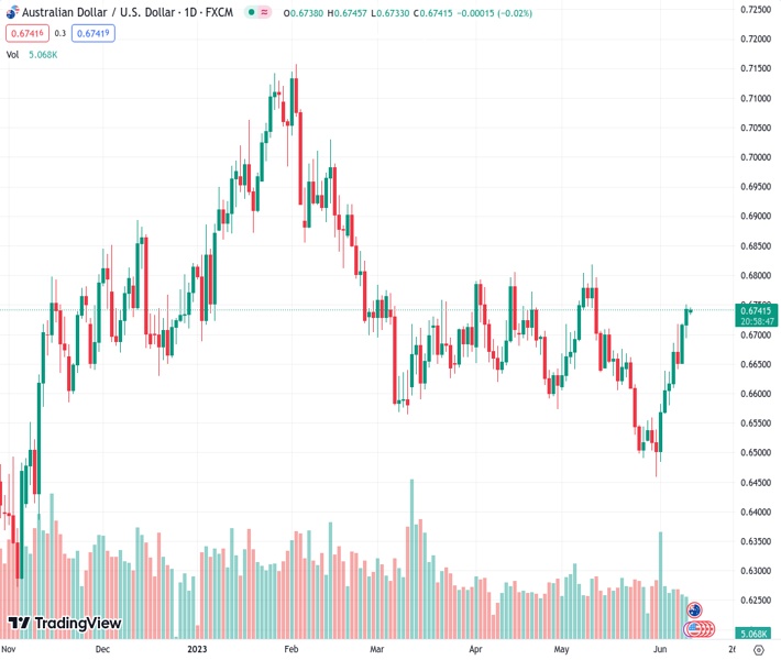 #AUDUSD @ 0.67426 picks up bids to refresh intraday high but stays sluggish at the highest level in a month.