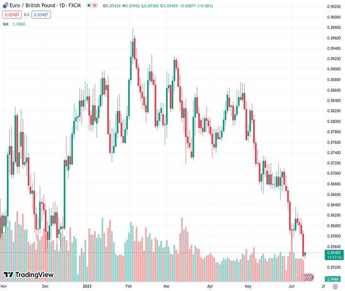 EUR/GBP remains on the back foot at the lowest level since August 2022, despite recently paring intraday losses near 0.8545 heading into Monday’s London open. In doing so, the cross-currency pair justifies comparatively downbeat economic concerns about the Eurozone more than the UK. However, the cautious mood ahead of this week’s top-tier UK data and the European Central Bank (ECB) Monetary Policy Meeting allows bears to take a breather.