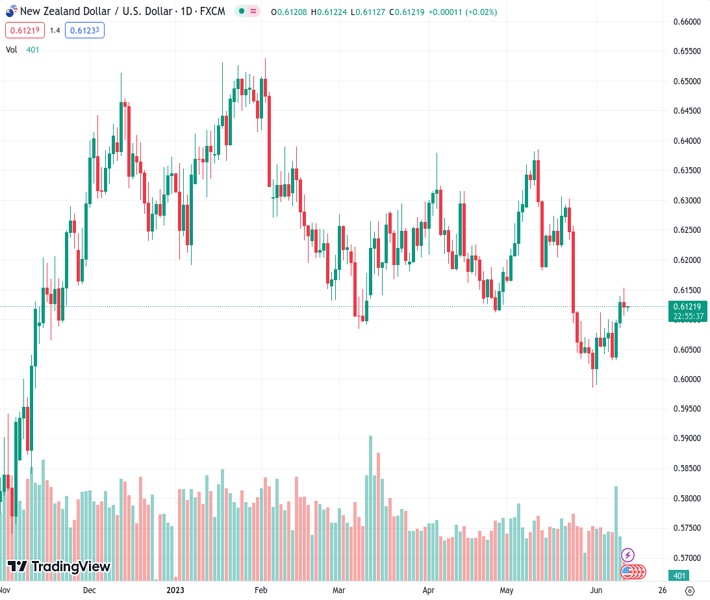 NZDUSD currently trading at 0.6119 at the time of writing. Pair opened at 0.6143 and is trading with a change of -0.39 % .