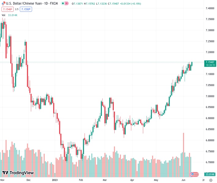 USDCNH currently trading at 7.155 at the time of writing. Pair opened at 7.1432 and is trading with a change of 0.17 % .