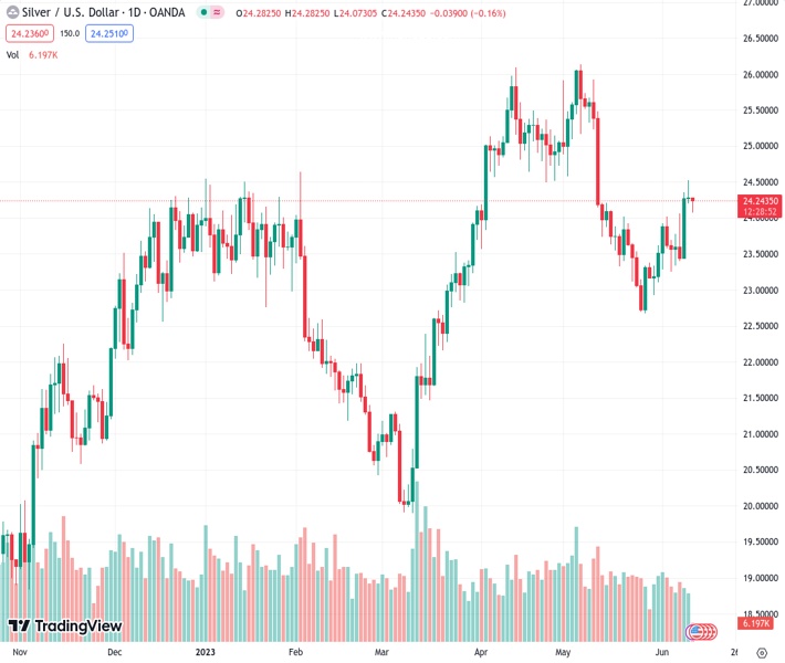 Silver price (XAG/USD) has sensed selling pressure around $24.20 in the London session. The white metal is broadly showing a sideways action ahead of the release of the United States Consumer Price Index (CPI) and the announcement of the interest rate decision by the Federal Reserve (Fed).