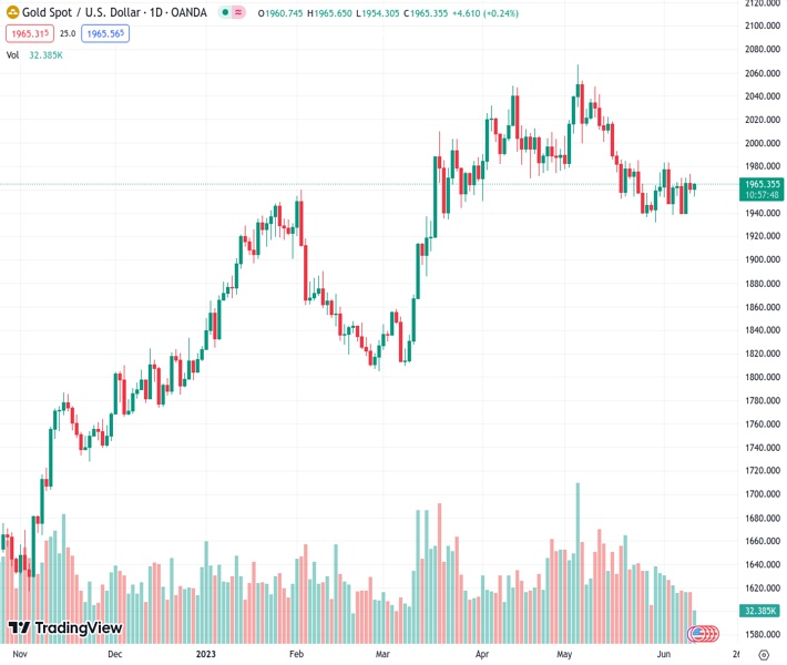 XAUUSD currently trading at 1964.97 at the time of writing. Pair opened at 1961.24 and is trading with a change of 0.19 % .
