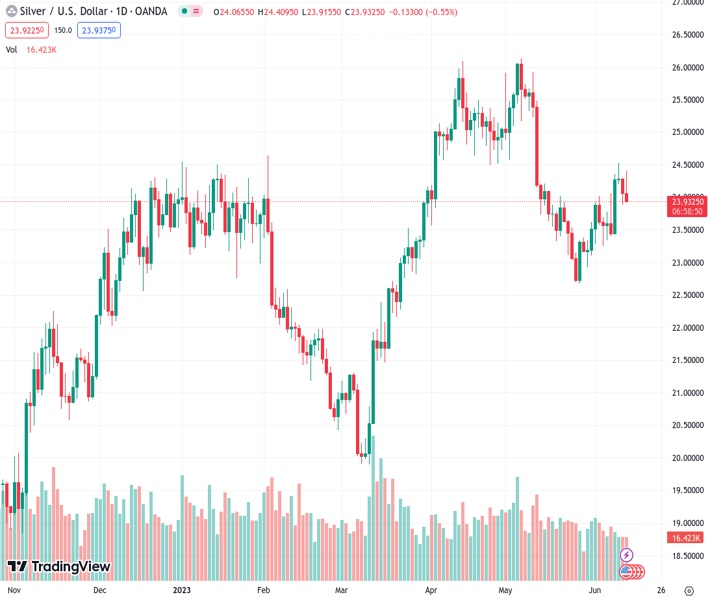 According to ANZ’s analysis, the price of silver, labeled as #XAGUSD and currently at 23.980, is predicted to increase and reach $26 by the end of the year.