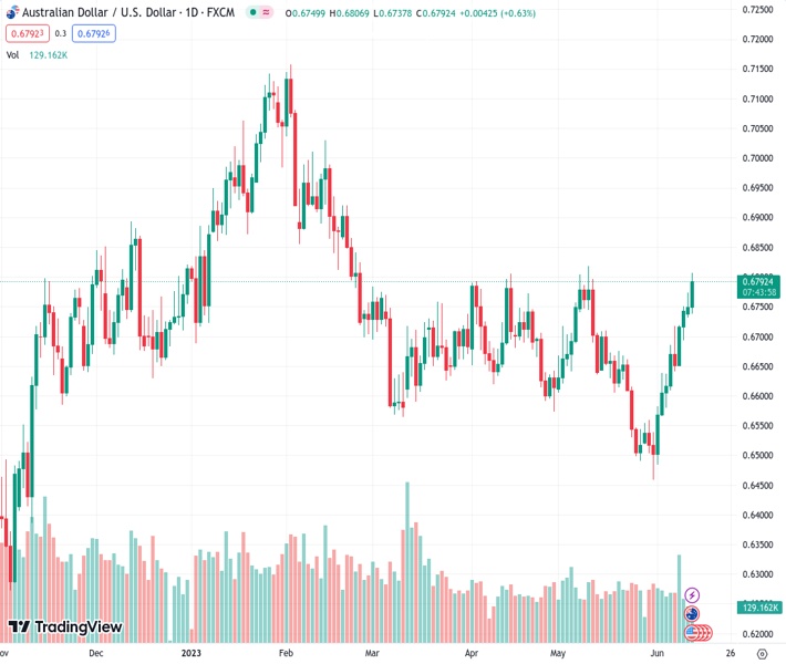 According to CIBC, #AUDUSD at 0.67988 is expected to experience a medium-term surge.