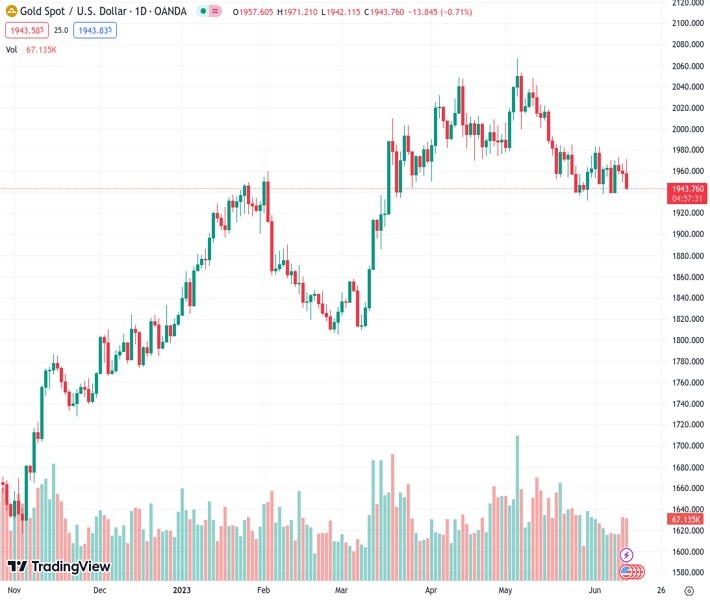 According to Commerzbank, the Gold Price Forecast suggests that there is a possibility of it decreasing further if the Federal Reserve remains open to implementing additional rate hikes. The current XAUUSD trading at 1,943.30.