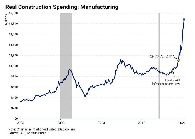 The US is seeing a surge in factory construction with six new factories being built every day, thanks to President Biden’s plan to bring production back to the country. However, the US manufacturing PMI has been struggling for some time, and a lack of workforce and high wages are creating challenges for these new enterprises. These issues are also contributing to high inflation, which is making it difficult for the Federal Reserve to lower interest rates and causing the cost of public debt to surpass the defense budget. [/s2If]