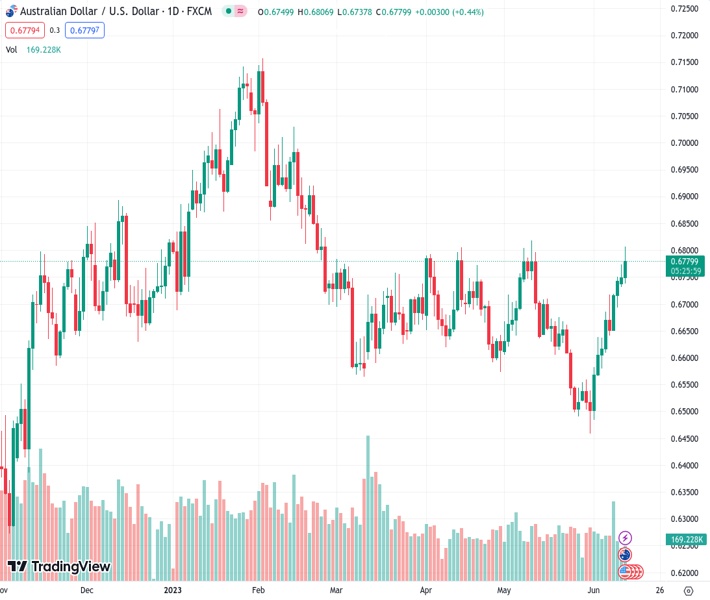 AUDUSD currently trading at 0.6791 at the time of writing. Pair opened at 0.675 and is trading with a change of 0.61 % .