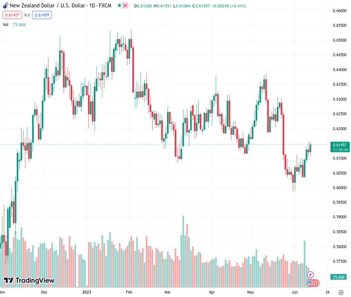 NZDUSD currently trading at 0.6146 at the time of writing. Pair opened at 0.6123 and is trading with a change of 0.38 % .