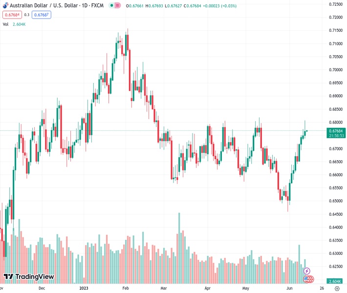 AUDUSD currently trading at 0.6765 at the time of writing. Pair opened at 0.675 and is trading with a change of 0.22% % .