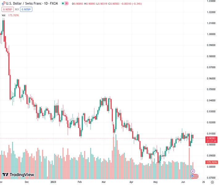 USDCHF currently trading at 0.9058 at the time of writing. Pair opened at 0.909 and is trading with a change of -0.35 % .