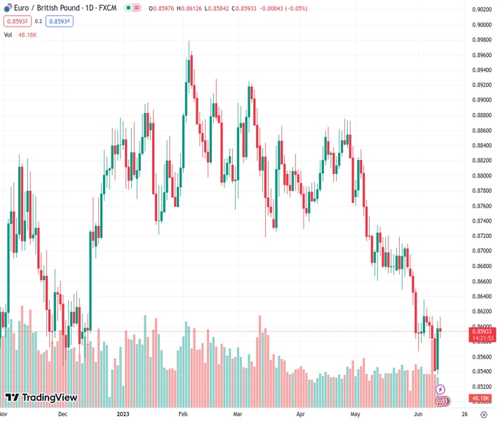EURGBP currently trading at 0.8605 at the time of writing. Pair opened at 0.8598 and is trading with a change of 0.08 % .