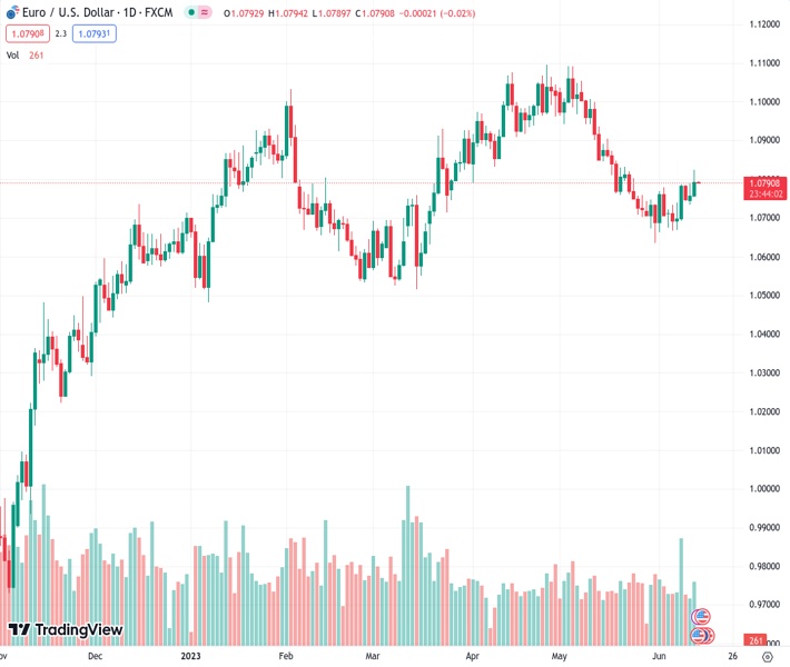 EUR/USD popped and dropped on Tuesday after hitting a 3-week high. A weaker dollar Tuesday was supportive of the euro but there was a turnaround when traders took a second inspection of the US inflation story. Core CPI remains sticky. However, central bank divergence remains positive for EUR/USD on the prospects for the Fed to pause raising interest rates on Wednesday this week while the ECB continues to raise interest rates.