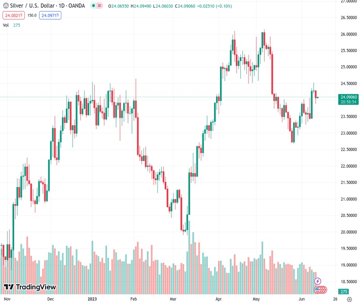XAGUSD currently trading at 24.09 at the time of writing. Pair opened at 24.29 and is trading with a change of -0.82% % .