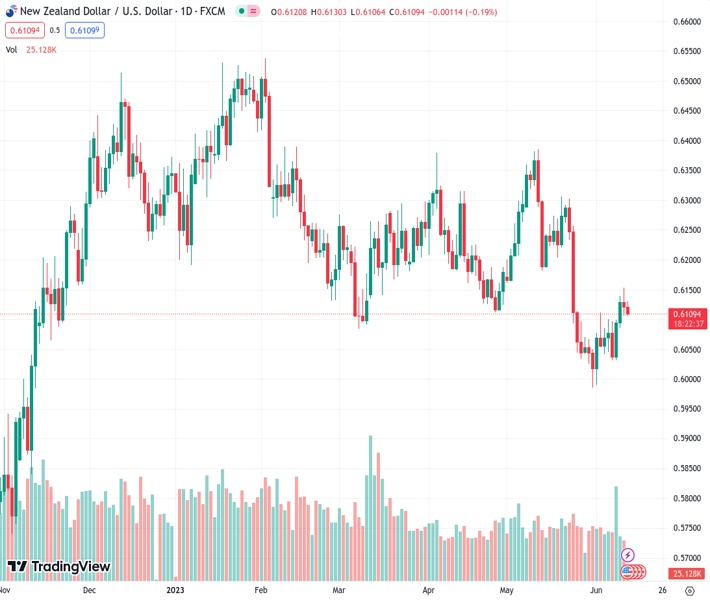 There is ongoing pressure on NZDUSD at a rate of 0.61088 following a decline from its three-week high. It is predicted by @nehcap that there will be further decreases.