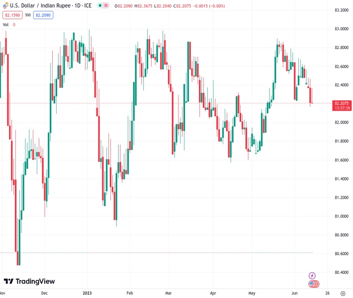 According to Commerzbank, the USDINR is expected to remain stable at around 82.00 in the third quarter and gradually decrease to 81.50 by the end of the year.